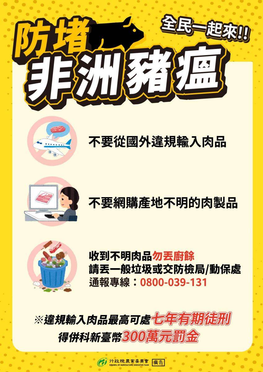 依據農業部公告,鑑於臺中地區疑似出現非洲豬瘟疫情,考量廚餘為非洲豬瘟主要傳播途徑之一,農業部自114年10